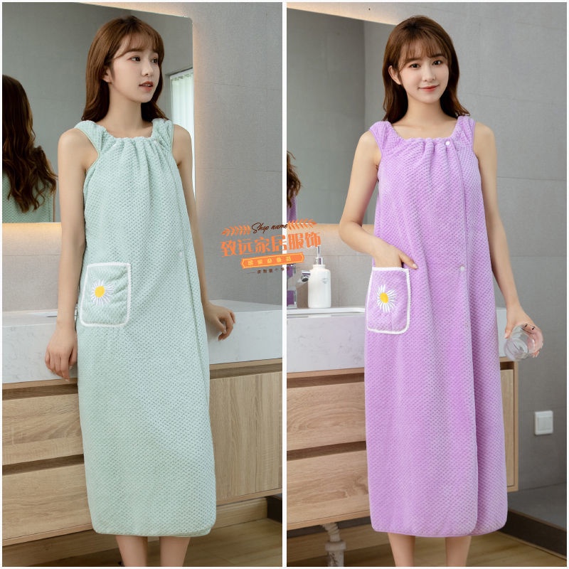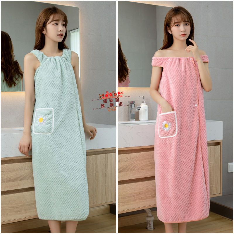 Bathrobe Can Wear Wrap Towel Adult Bath Absorb Water Than Pure Cotton Skirt Long Coral Fleece