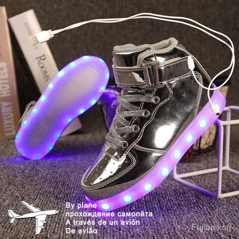Size 25-46 Kids Led USB Recharge Glowing Shoes Children's Hook Loop Shoes Children's Glowing Sneakers Kids Led Luminous Shoes CQ01